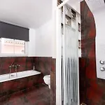 A fürdőszoba a következőket tartalmazza: fürdőkád, zuhanyzó és mosdótál.
